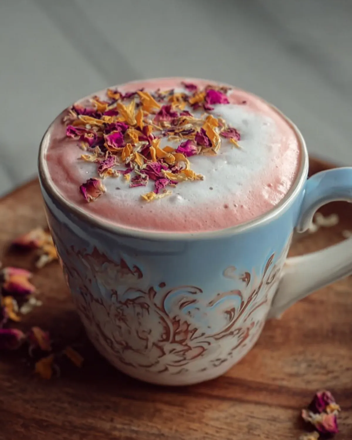 Moreover, this drink is great for relaxation. Chamomile is known for its calming properties, making it an excellent choice for winding down after a long day. The rose petals not only add flavor but also promote a sense of well-being. Lastly, serving this pretty latte can impress your friends and family. It looks stunning with its warm colors and optional whipped cream on top.