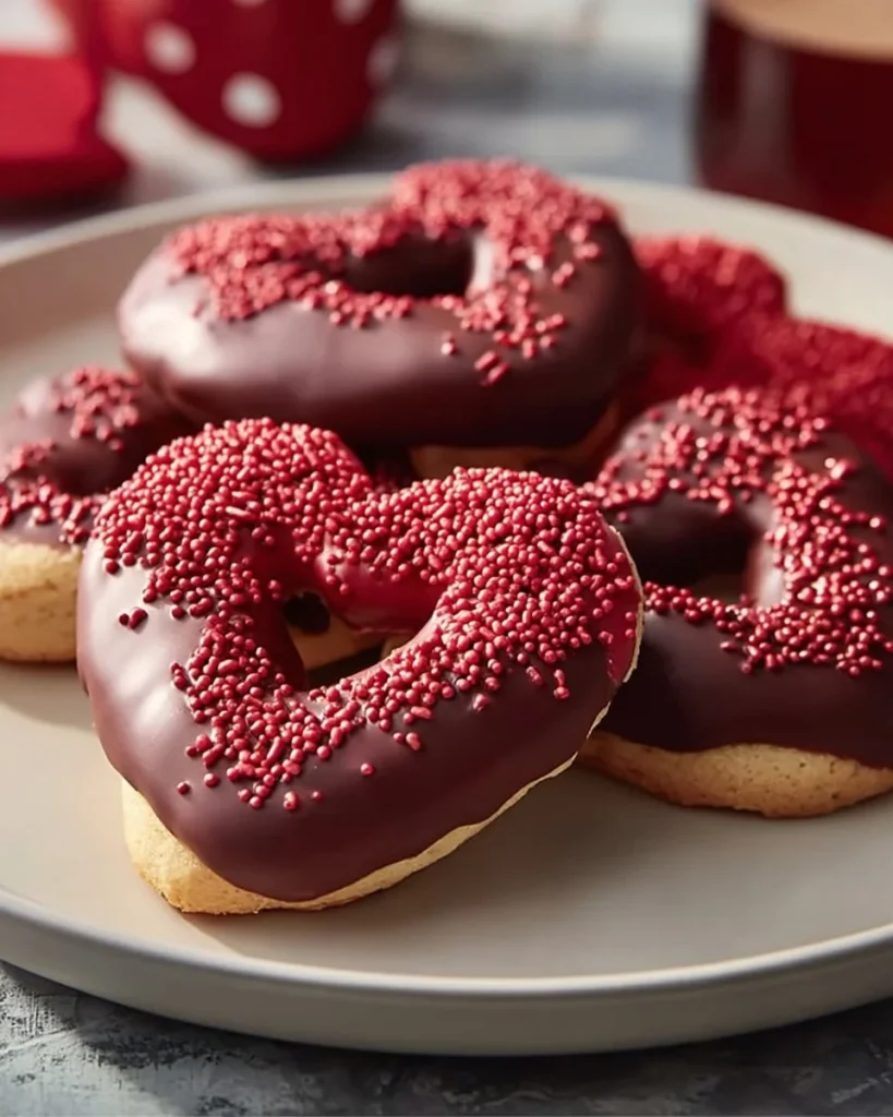 Fill a piping bag with a star tip. Pipe small hearts or circles about 1.5 inches across. The size matters for even bake time. Chill the piped shapes for two hours. Bake at 350°F (175°C) for 12 to 15 minutes. The edges will turn light gold. Let them cool fully on the tray. If you dip them in chocolate, melt the chocolate over a double boiler and add a little oil. Dip half of each biscuit into chocolate and set them on parchment to firm.
