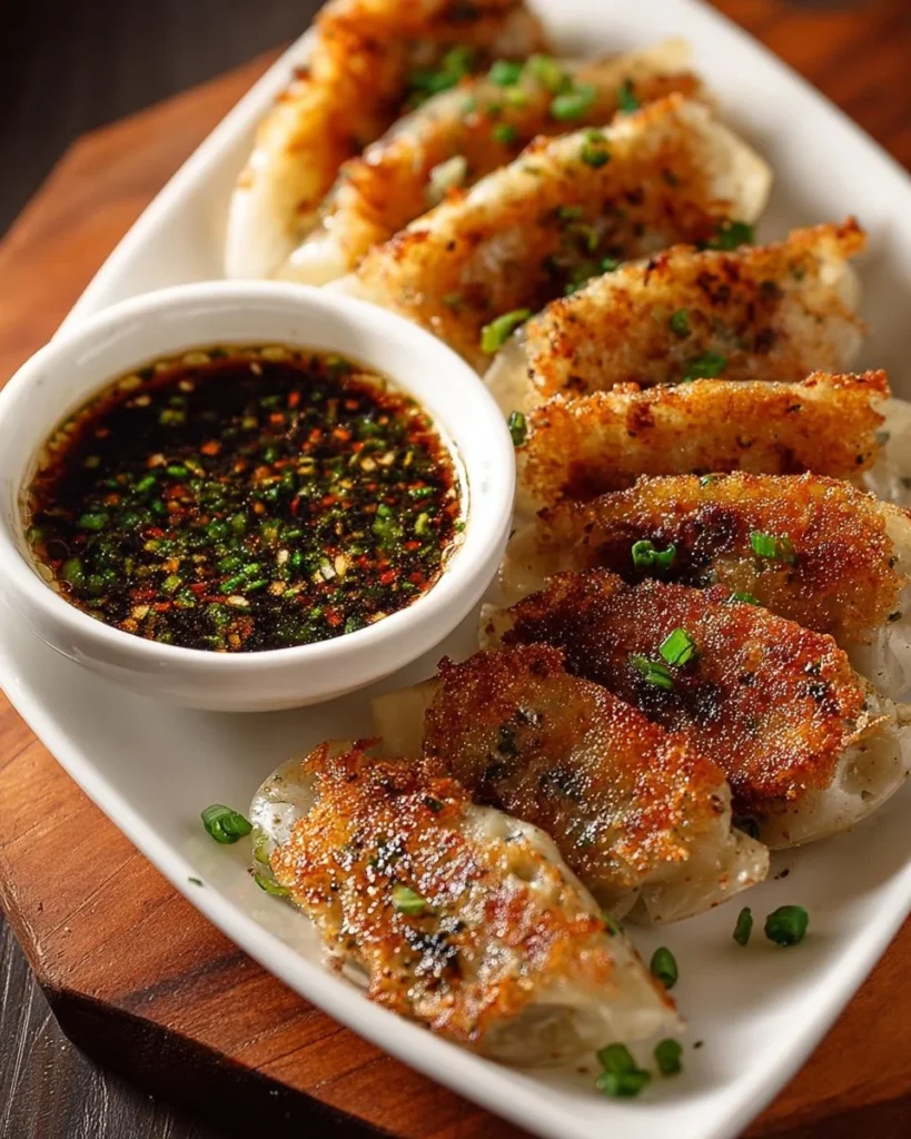 1. Serve the hot, crispy dumplings immediately with the dipping sauce on the side.