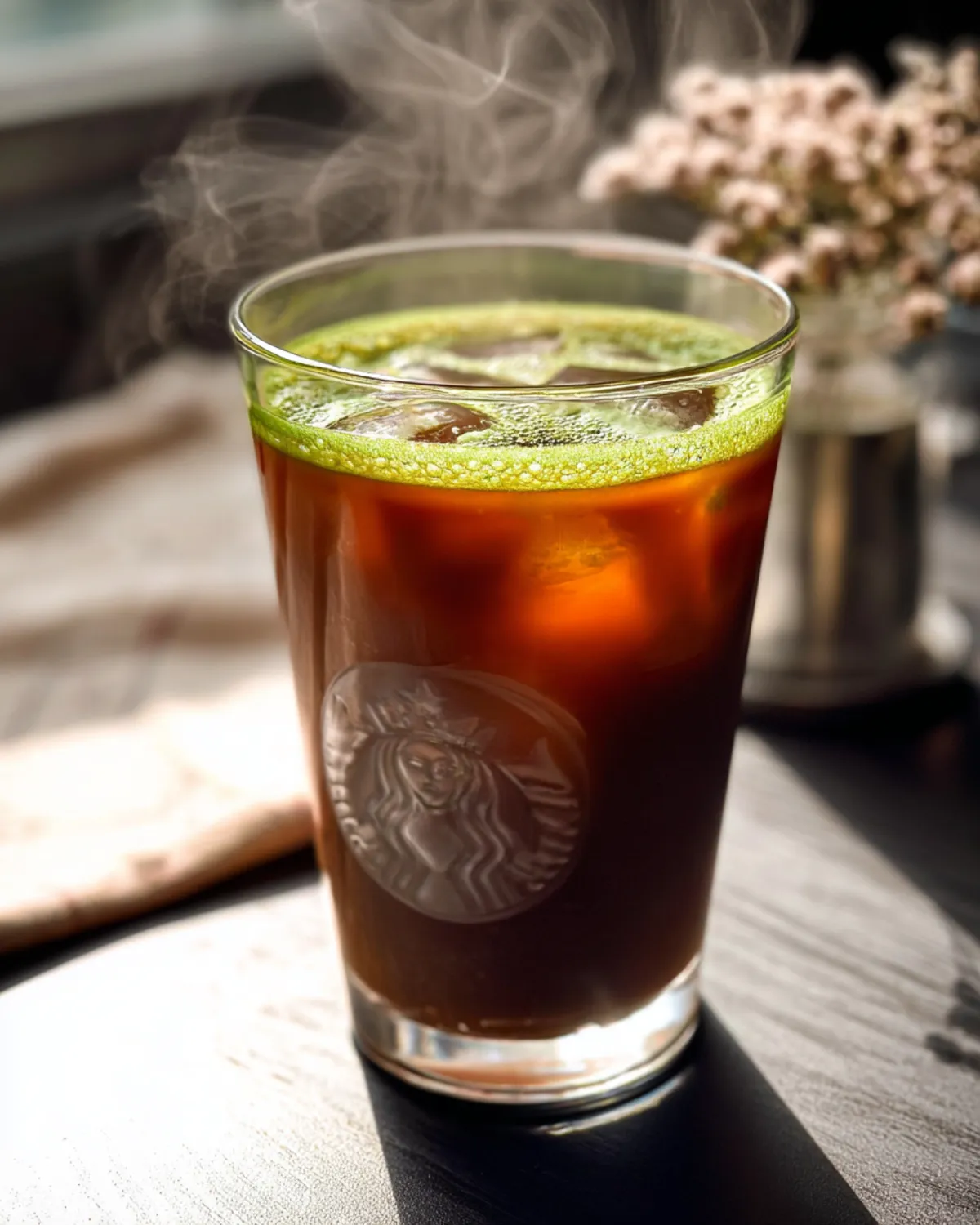 - Carefully top the cold brew with the non-dairy matcha cold foam you prepared earlier.