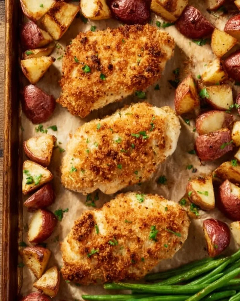 Parmesan Crusted Chicken Sheet Pan Dinner